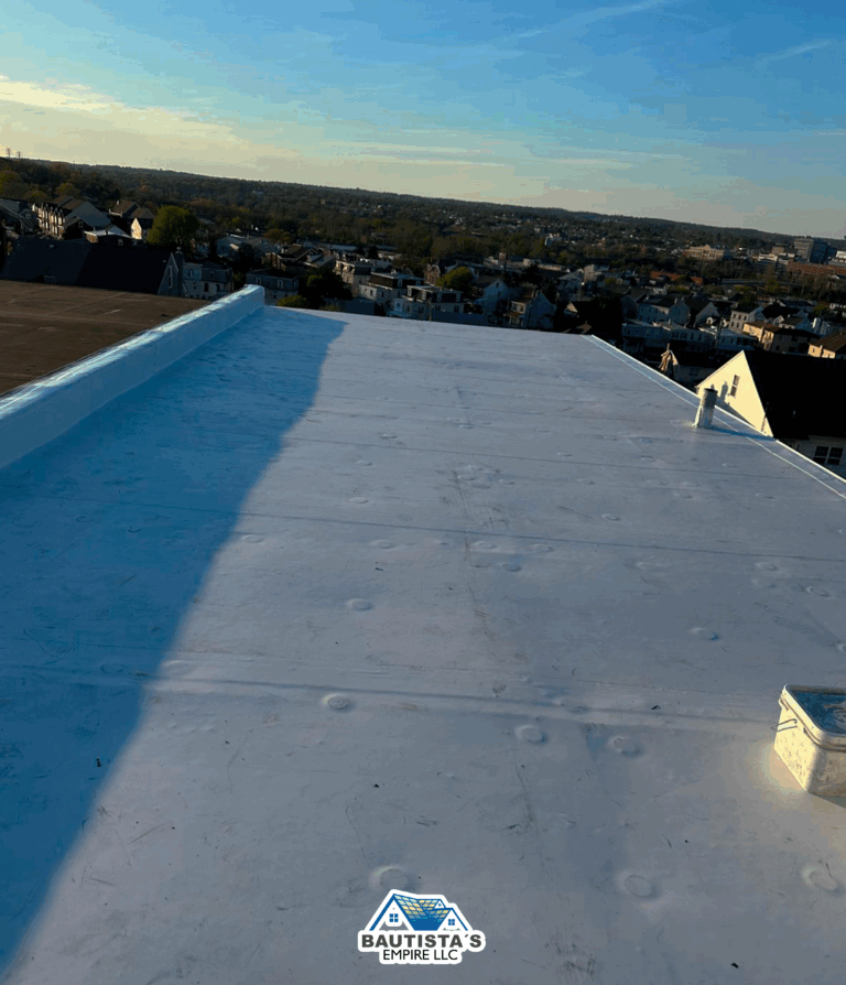 The installation of a flat roof with the GAF TPO (Thermoplastic Polyolefin) system was key to this project. This material is highly energy efficient, flexible, and durable, protecting against UV rays, leaks, and wear and tear, making it ideal for commercial and residential flat roofs.